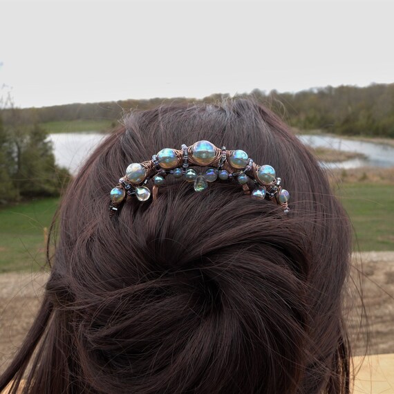 6 Prong Beaded Hair Comb For Buns French Twist Pin Sapphire Etsy Uk
