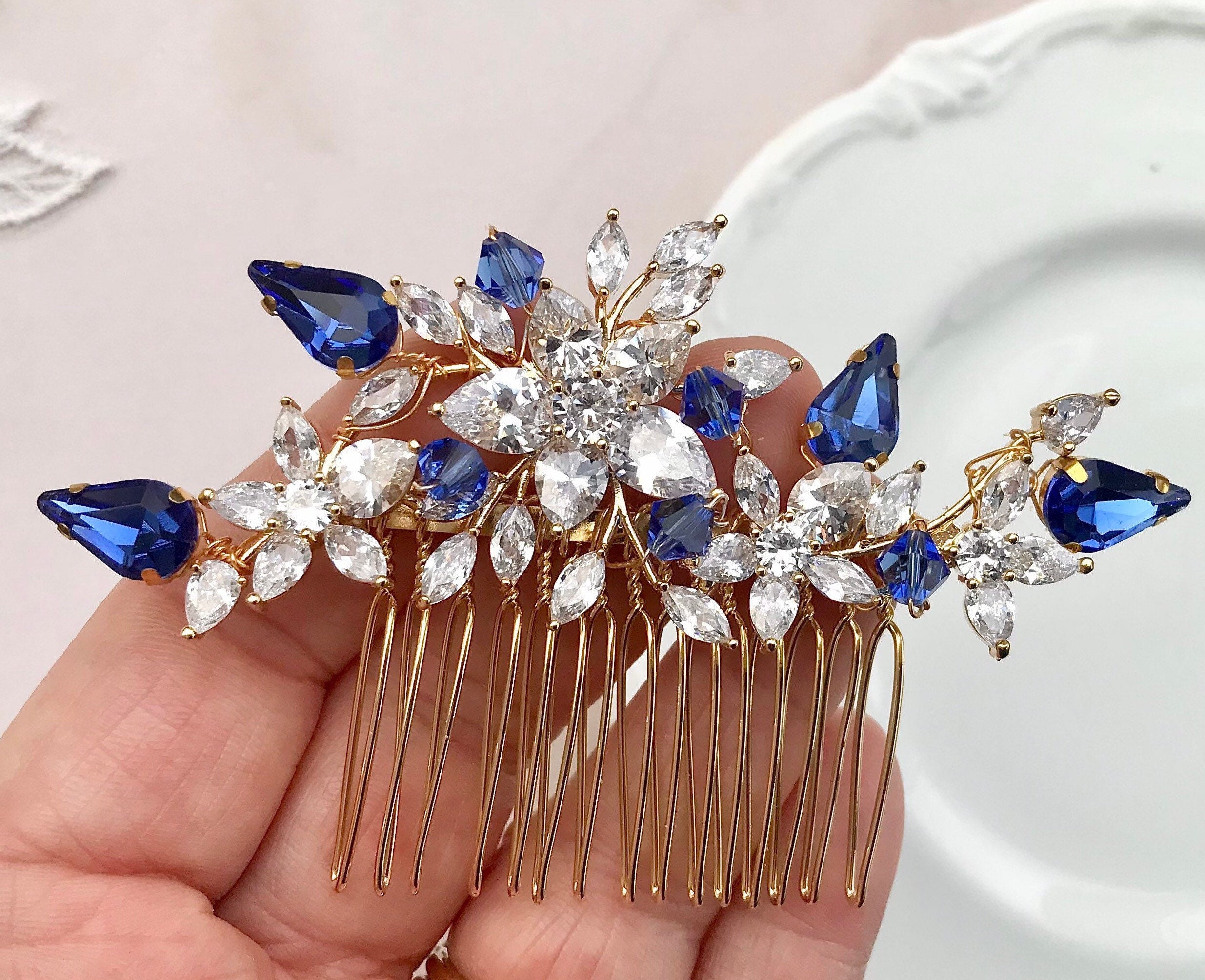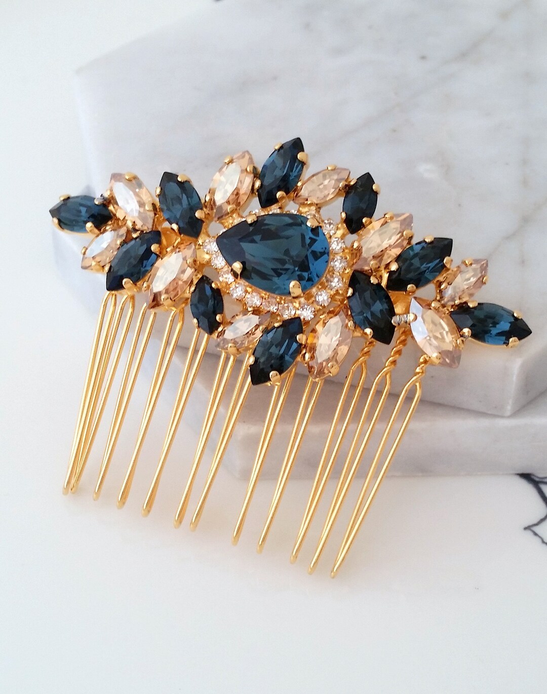 Sapphire Hair Combwedding Hair Accessorynavy Blue Champagne Etsy Uk